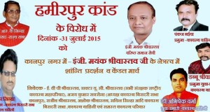 हमीर पुर की घटना के विरोध में कानपुर मे धरना परदेसन और कैंडल मार्च का आयोजन किया गया जिसमे इं मयंक श्रीवास्तवके नेतृत्व में कायस्थ समाज के विभिन्न लोग व प्रदीप कुमार सिन्हा (सचिव), अजय कुमार सक्सेना, राकेश श्रीवास्तव, वी पी श्रीवास्तव, ज्ञान स्वरूप सक्सेना, अनिल सिन्हा, राजीव श्रीवास्तव, सचिन सिन्हा, पवन सक्सेना, विक्रांत श्रीवास्तव आदि भारी संख्या में पहुंचे ...