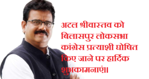 Read More »बिलासपुर छत्तीसगढ़ से कांग्रेस ने अटल श्रीवास्तव को बनाया अपना प्रत्याशी