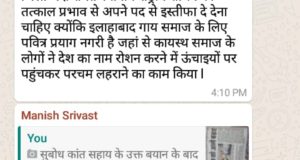 Read More »KADOM पर बवाल : इलाहबाद कायस्थ समाज ने ABKM(KADOM) के जिलाध्यक्ष समेत स्थानीय पदाधिकारियों से की इस्तीफे की मांग