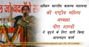 Read More »अखिल भारतीय कायस्थ महासभा की राष्ट्रीय महिला अध्यक्षा नीरा शास्त्री ने कायस्थ महिलाओं के लिए जारी किया आवेदन पत्र